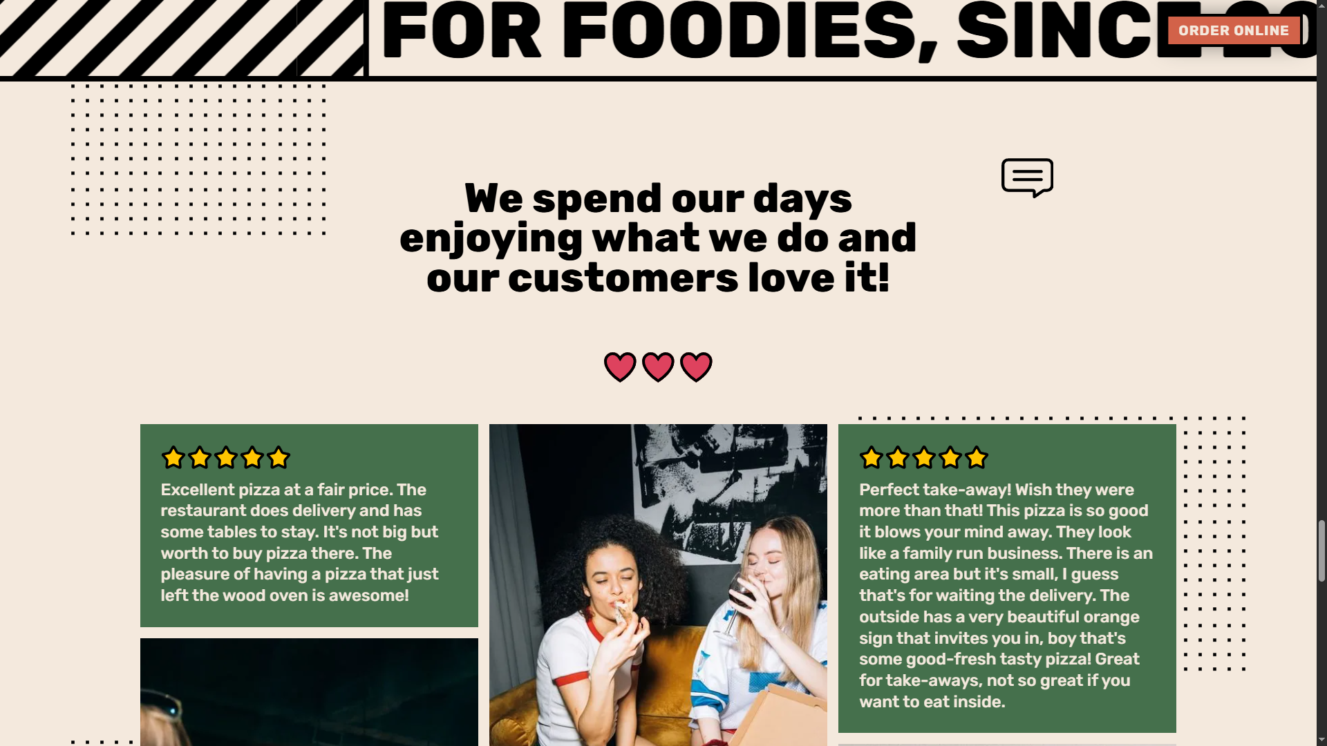 پالت رنگی گرم و خوشمزه، عکسای باکیفیت پیتزا که آدم رو گرسنهتر میکنه، کلی افکت تصویری قشنگ... خلاصه فضای سایت جوری طراحی شده که اگه کسی واردش بشه، احتمالاً دو دقیقه بعد داره تو منو میچرخه و سفارش ثبت میکنه. منو هم خیلی روونه، همه چی دستهبندی شده، هر کسی راحت میتونه پیداش کنه و سفارش بده. تازه میتونی با مشتریا ارتباط بگیری و یه رابطه درست و حسابی بسازی.