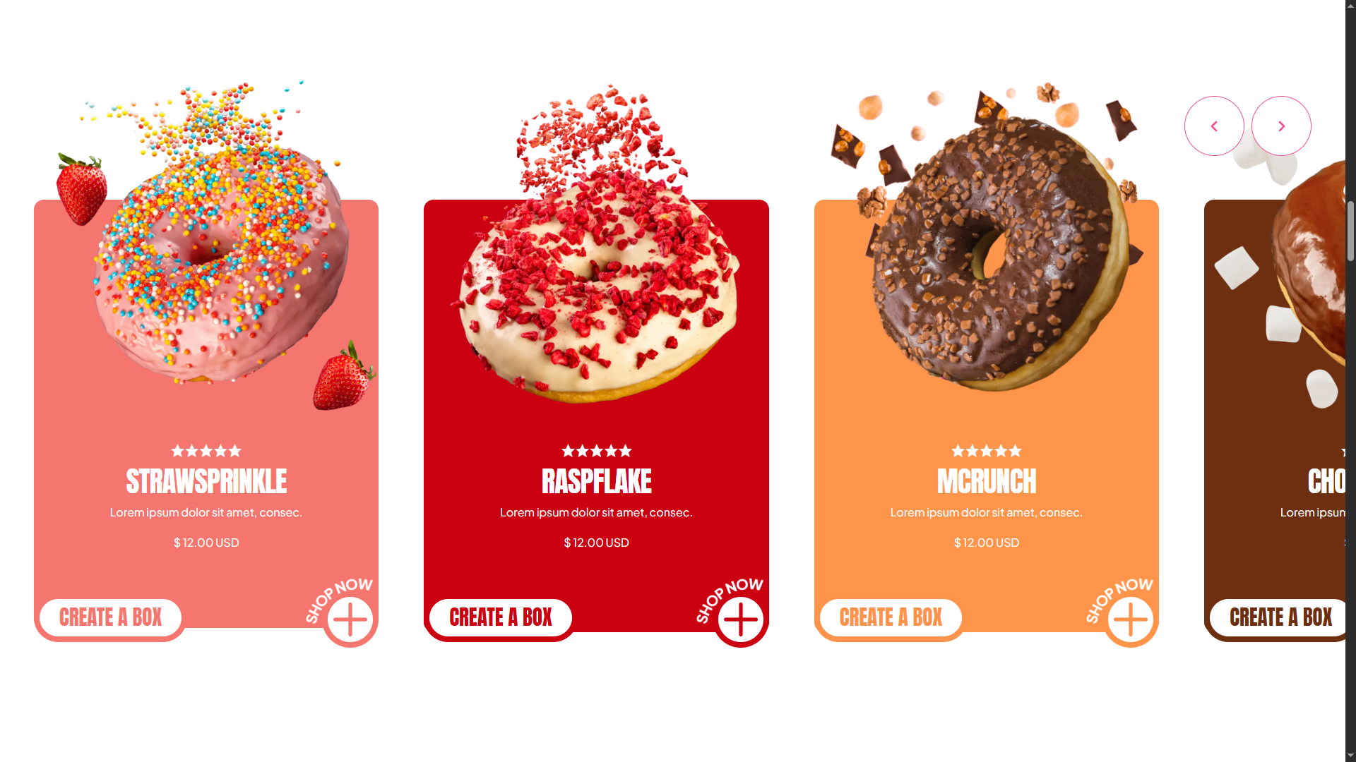 • اسلایدر Hero تمامعرض با تصاویر حرفهای از دوناتها و دکمه دعوت به اقدام خرید